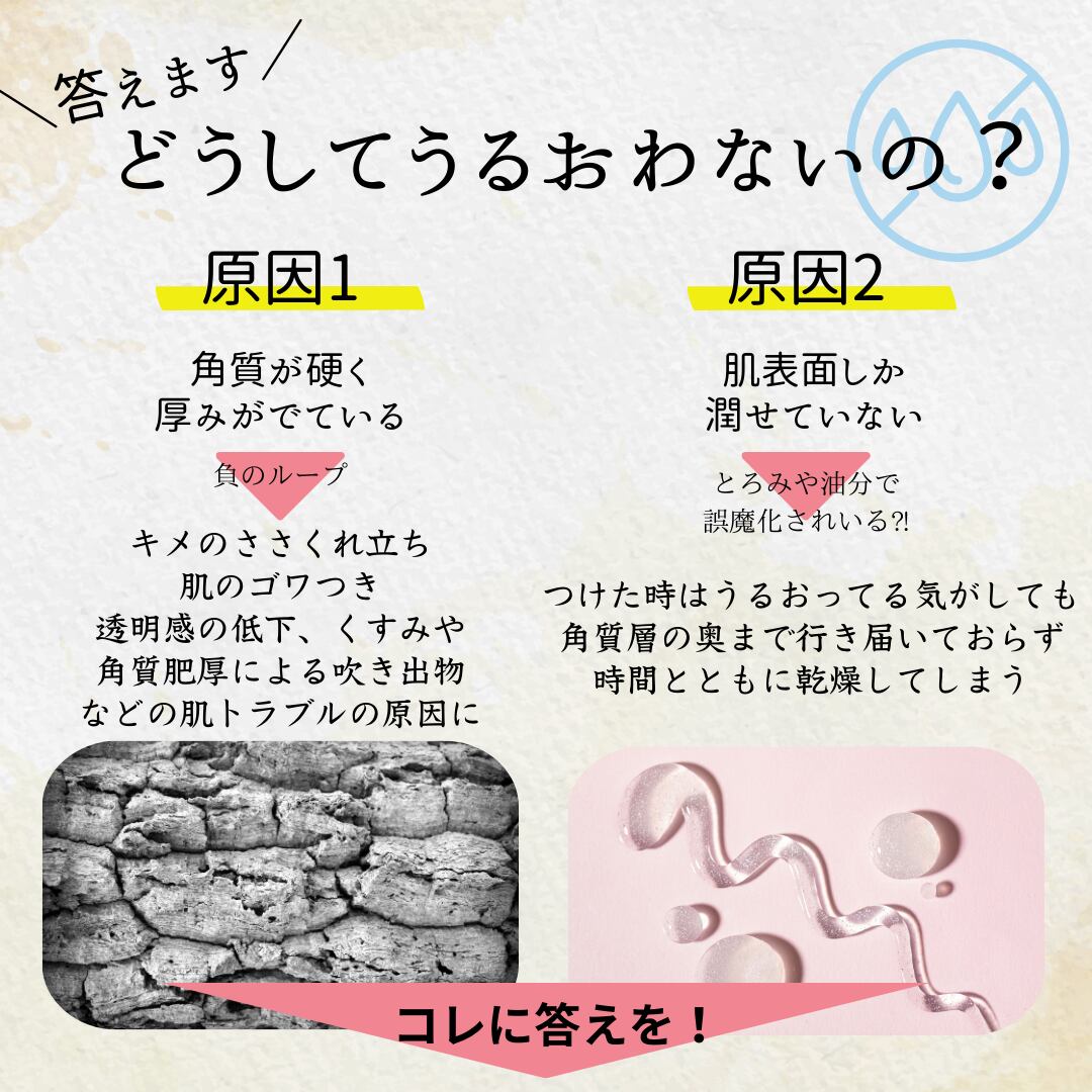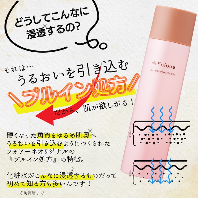 驚くほどの浸透感、やわらかな肌さわりへ整え、みずみずしい肌へ。