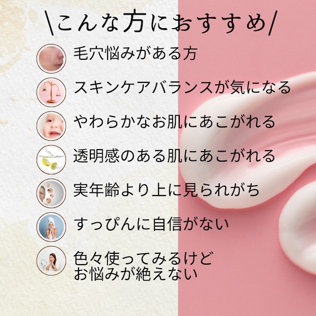 肌のハリ、エイジングケア(年齢に応じたお手入れ)、保湿、明るさ弾力・・・