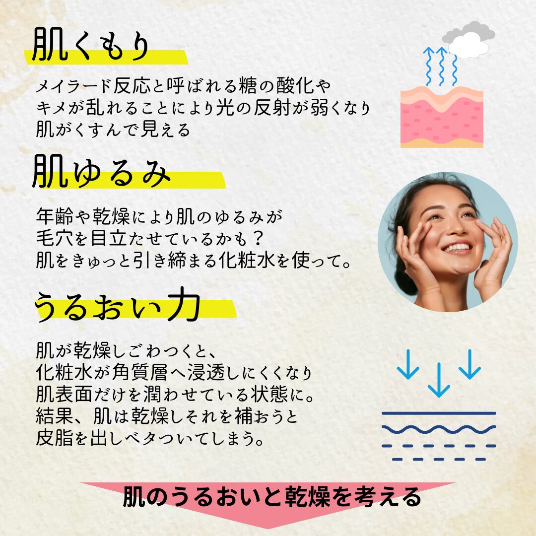 強くこすったり、強くたたかないように優しくお肌に潤いをあたえてください。