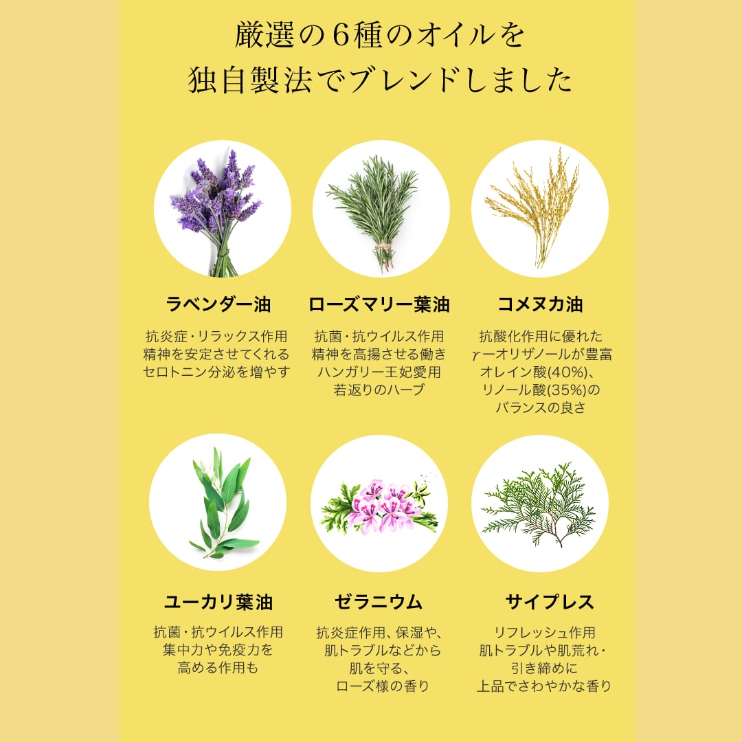 植物アロマ6種をブレンドした心地よい香り